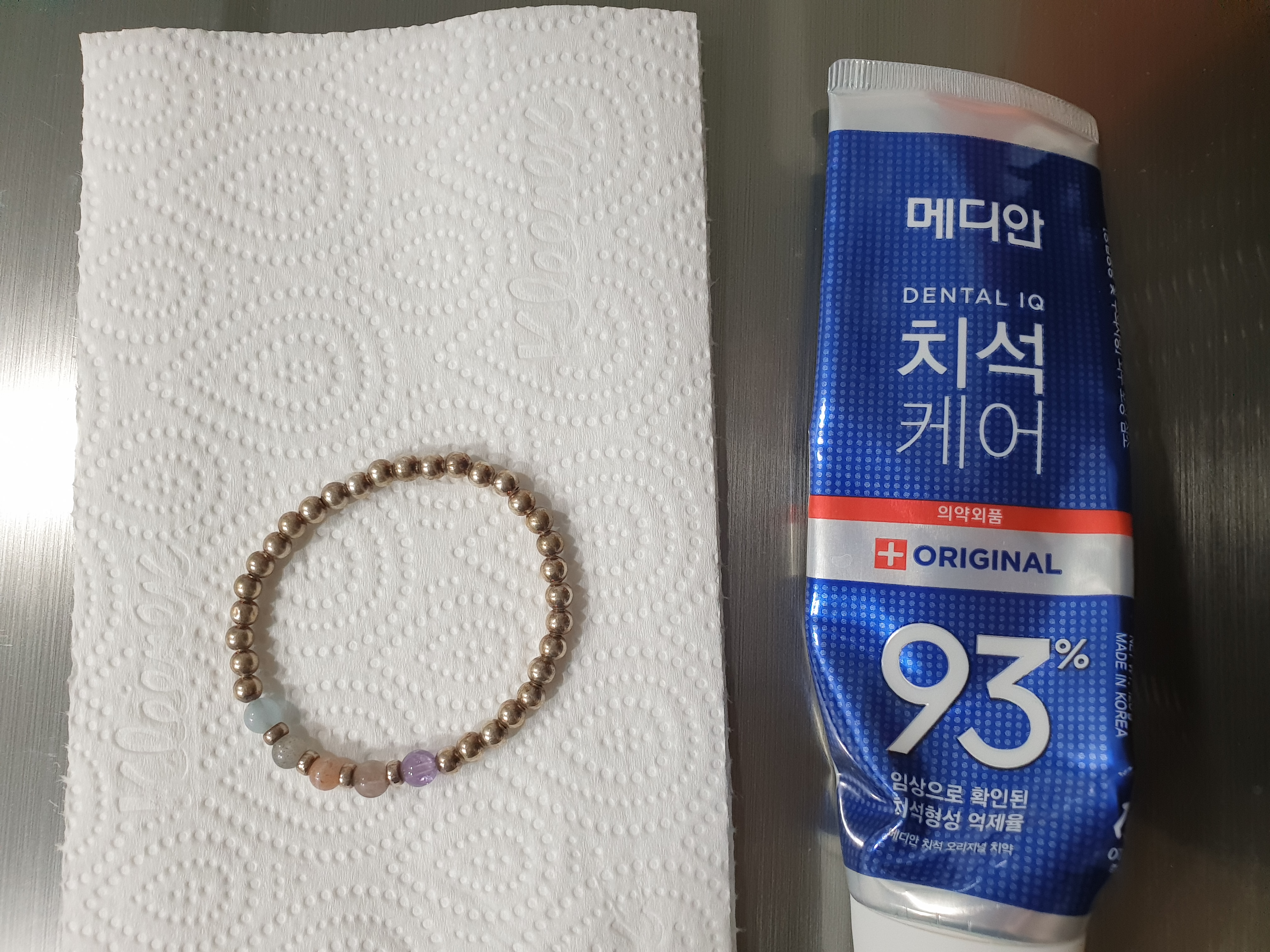 저는 귀걸이, 팔찌, 반지 고루고루 치약으로 닦아준답니다.