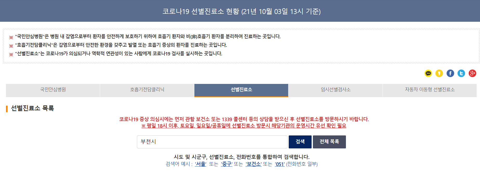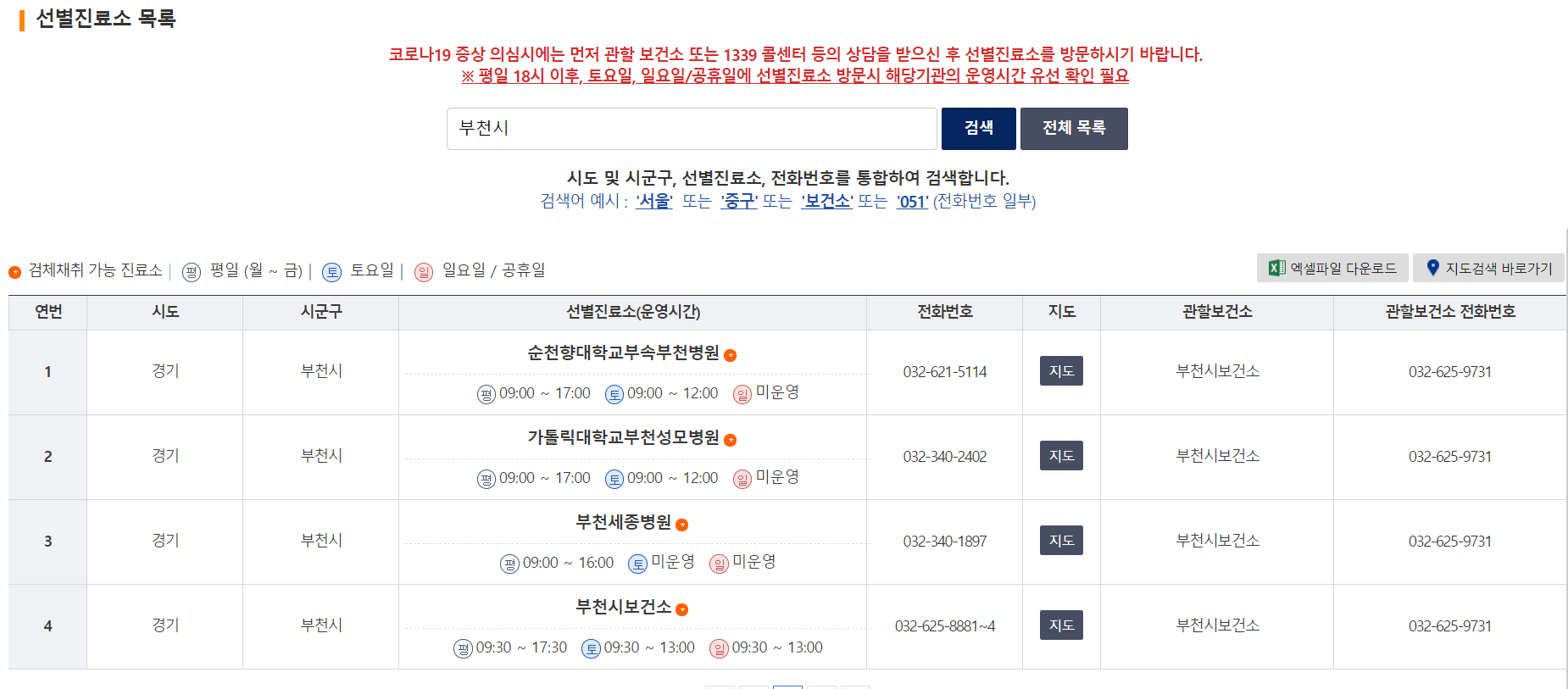 부천시에는 이렇게 4개의 선별진료소가 운영되고 있더라구요.