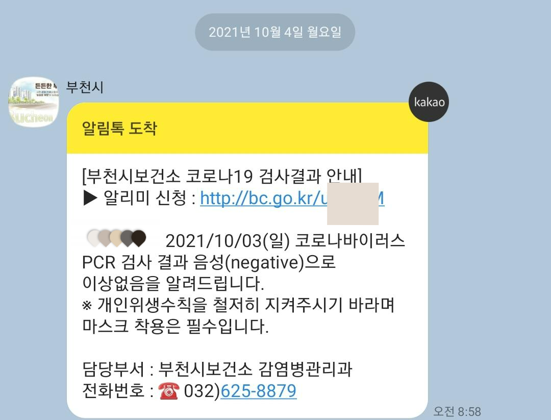 다음 날 오전 8시58분에 카톡으로 연락이 왔습니다 : )