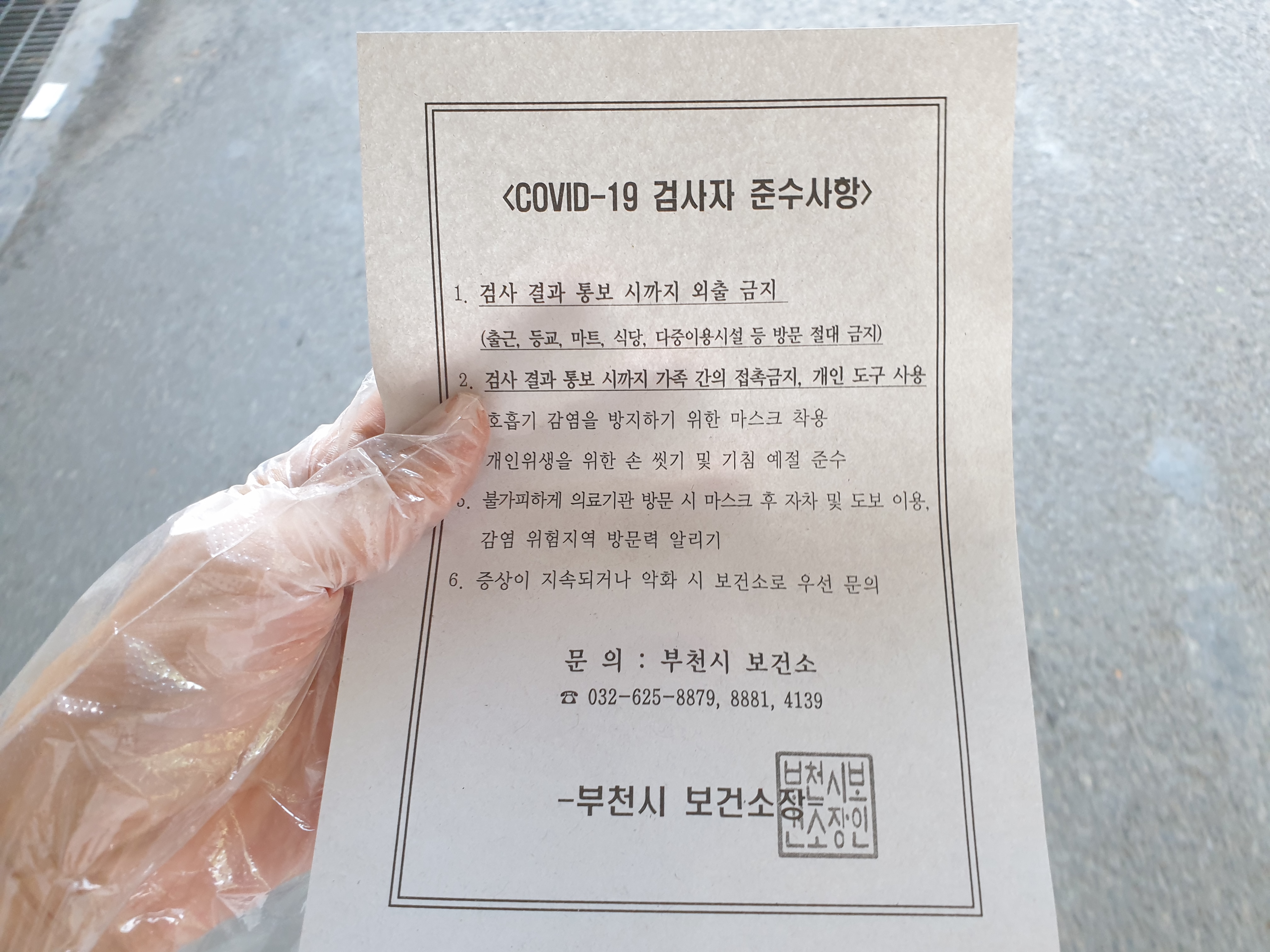 오늘은 제가 처음으로 코로나 검사를 받고 와서